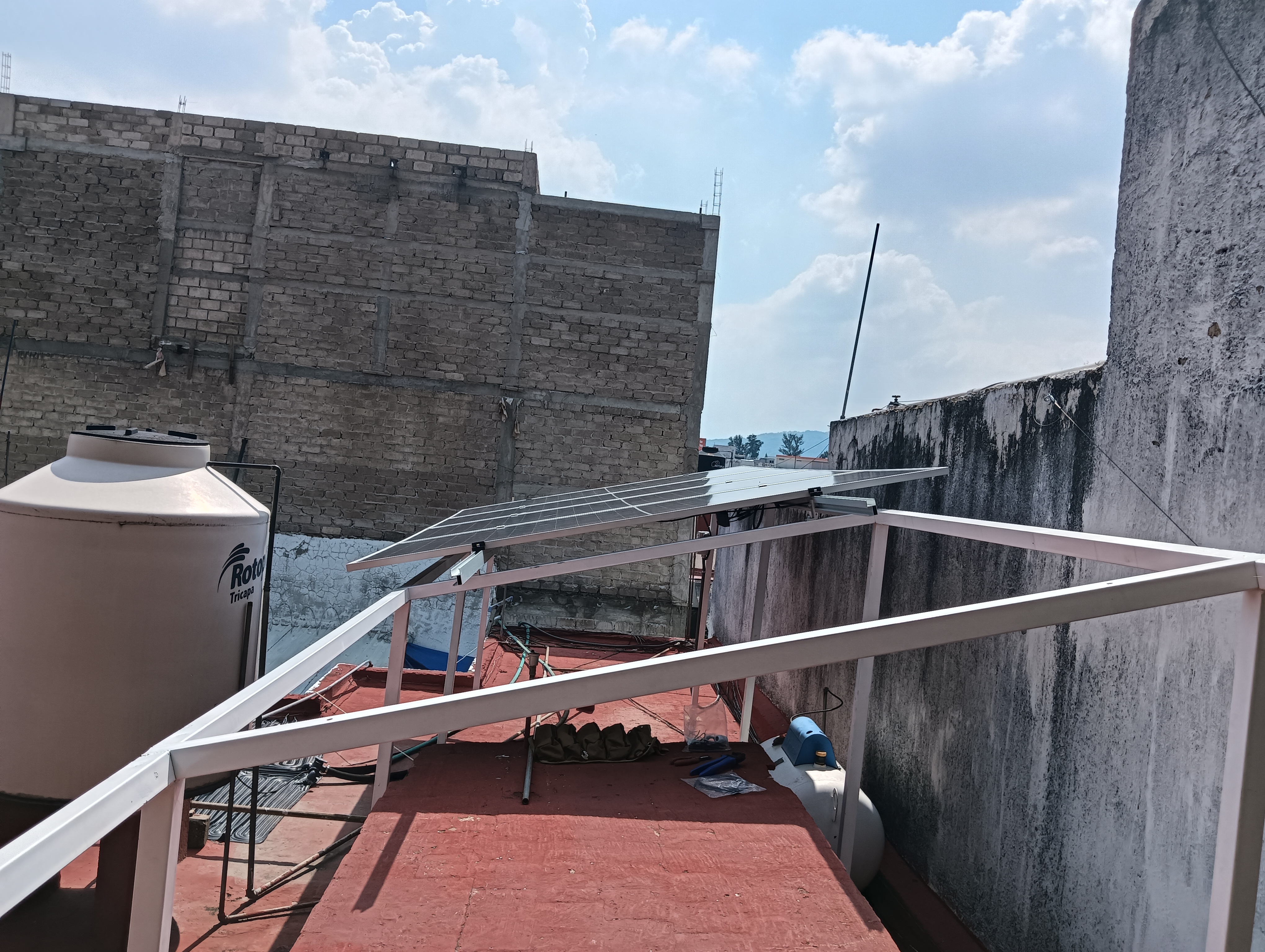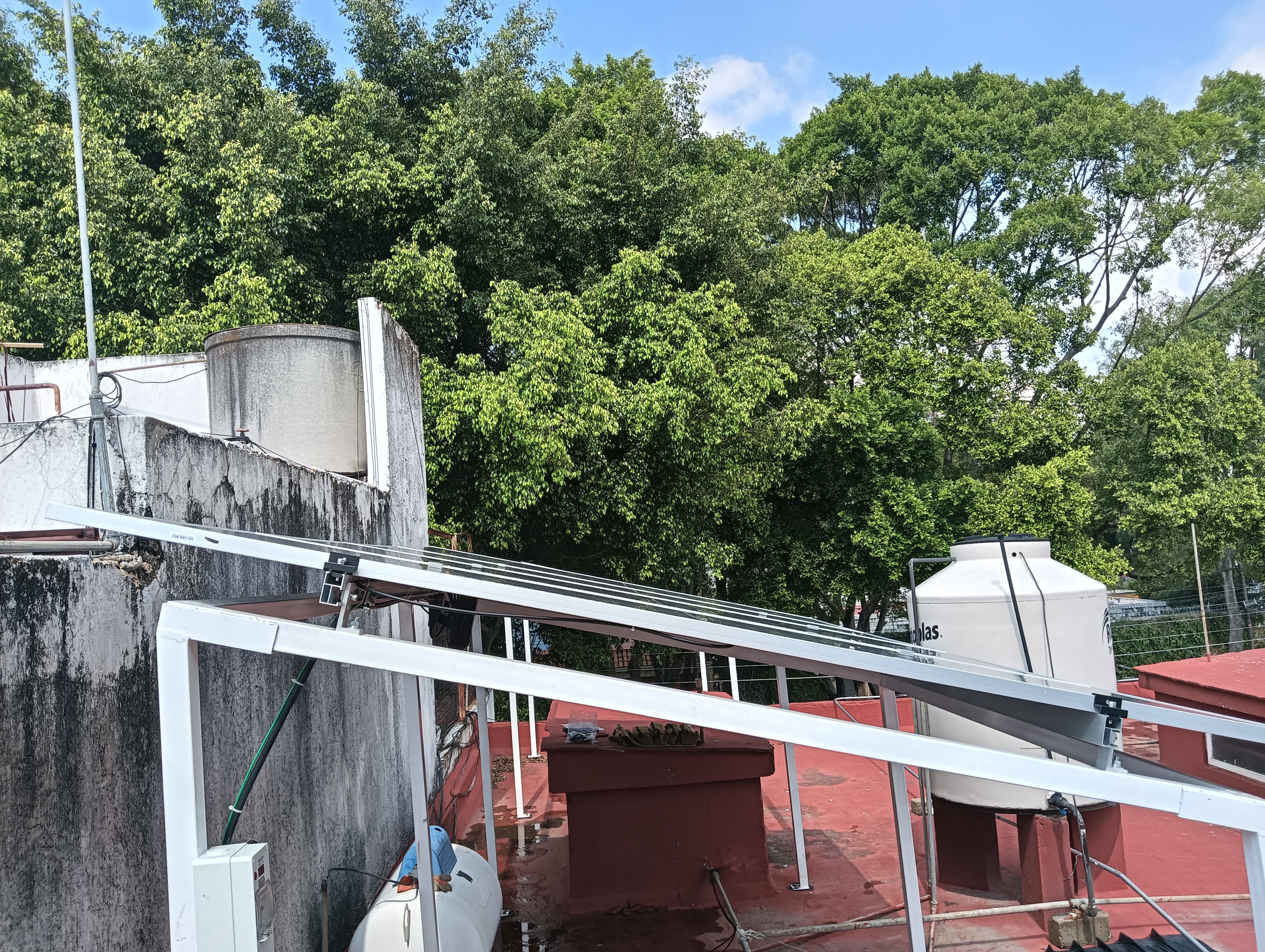 Instalación de 4 Modulos solares con estructura para capacidad de ampliar a 8 moduos solares